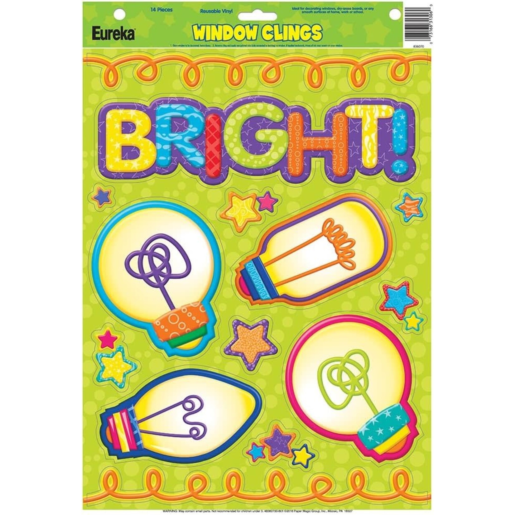 Color My world light bulbs window clings are reusable, static cling vinyl that sticks to any laminated or glassy surface without leaving residue. Each sheet measures 12" x 17"