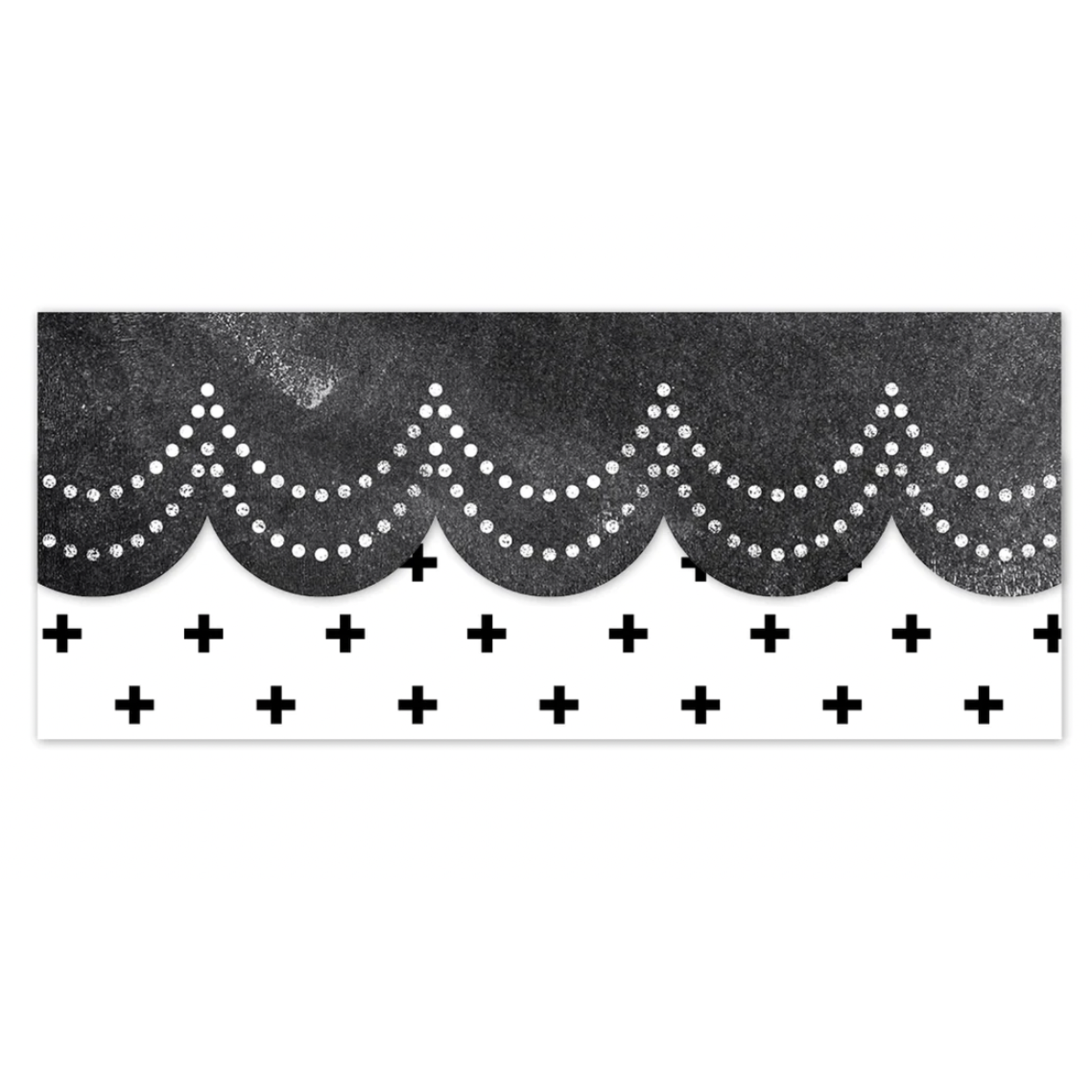 Add a touch of elegance to your wall displays with the Dotted Scallops EZ Border. This border features the look of beaded garland on a chalk-style background. Perfect for use on bulletin boards in a wide variety of classroom, office, and school settings. These EZ borders come in smaller strips, which are easier to manage and store. Each package comes with enough borders to complete 2 full bulletin boards.